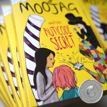 MOOJAG and the Auticode Secret, our award-winning dystopian, cli-fi mystery is a quirky adventure featuring neurodivergent cast and autistic/dyslexic/adhd main characters, for readers 10 years and up, recommended as a family read due to the thought-provoking concepts and subject matter introduced. Set in the utopian world of post-catastrophe 'Surrey Isles', Britain 2054, where neurodivergents live in harmony with nature and technology, and the hidden dystopian 'Gajoomdom'.